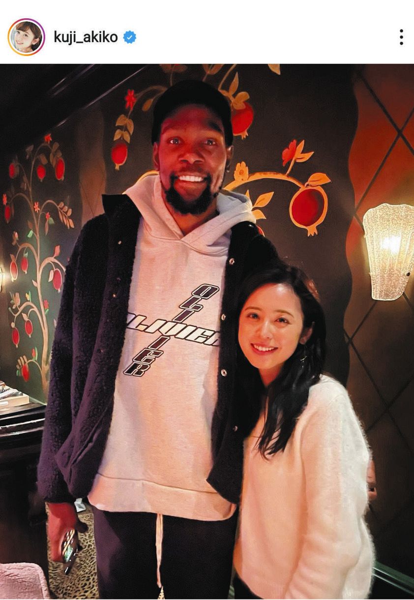 元フジテレビアナウンサーでタレントの久慈暁子(28)が19日、自身のインスタグラムを更新。NBAネッツの夫・渡辺雄太(28)のチームメートであるケビン・デュラント(34)との2ショットを投稿した。
