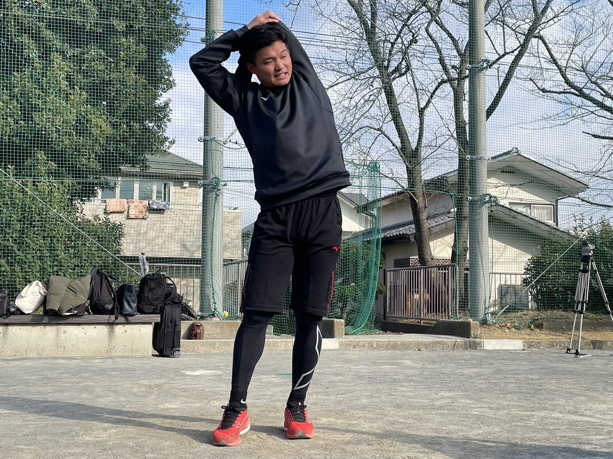 小学生の時に所属していた野庭日限フェニックス時代に使用したことのある西洗第一公園でキャッチボールやトスバッティングなどで約2時間実施。「自分が大きくなったのもあって球場が狭く感じる。思い出深いですね」と振り返った。