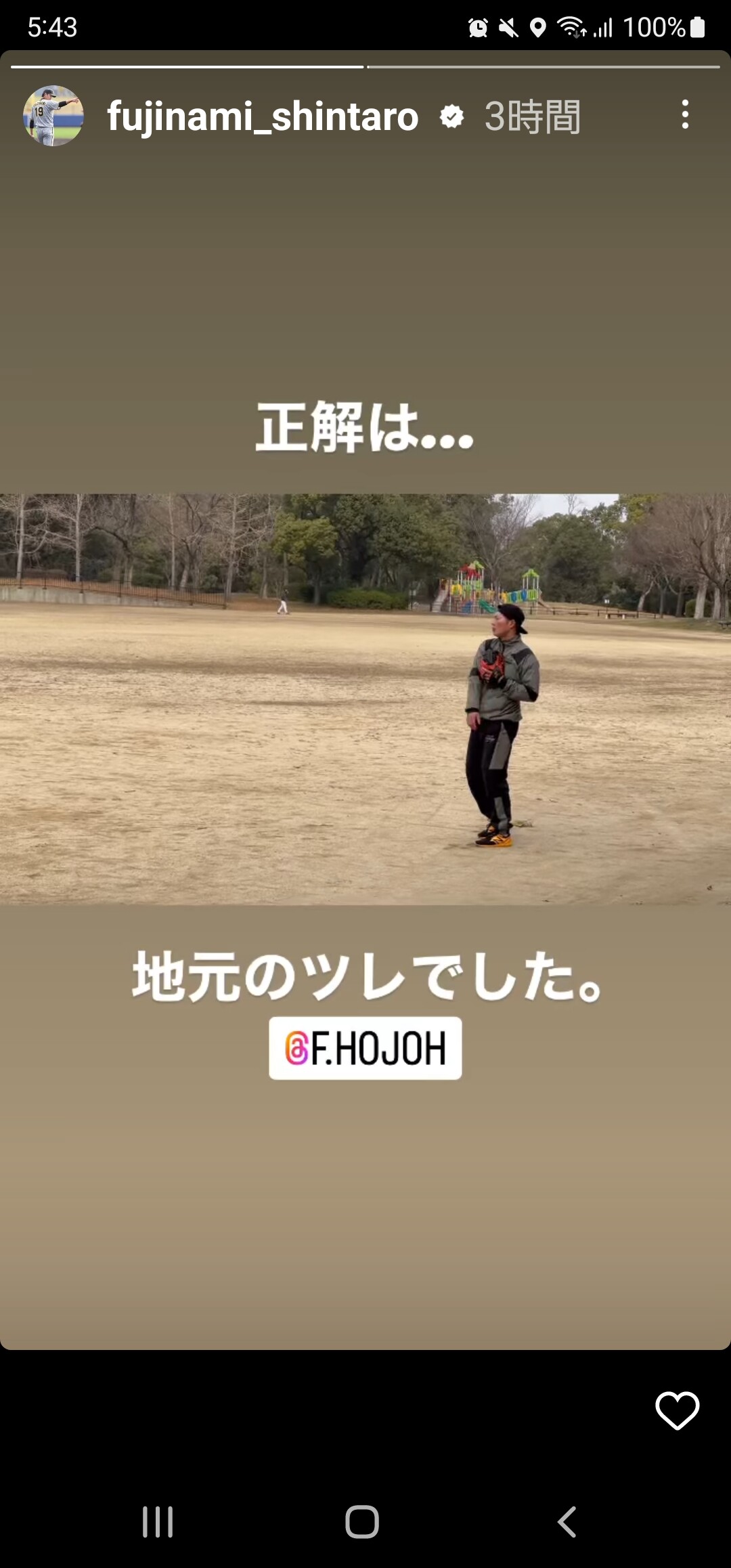 阪神からポスティングシステム制度を使用して大リーグ移籍を目指している藤浪晋太郎投手が2日、インスタグラムのストーリーズを更新。同学年の北條とキャッチボールしたことを明かした。