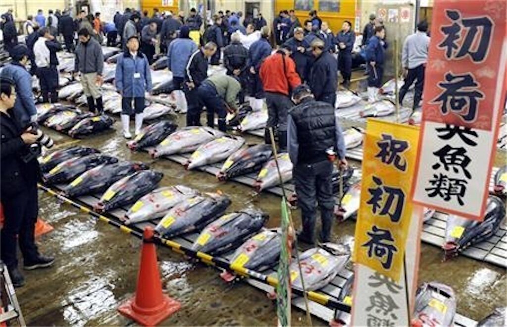 「魚河岸初競り」では、新年の初物として御祝儀相場が付けられる。