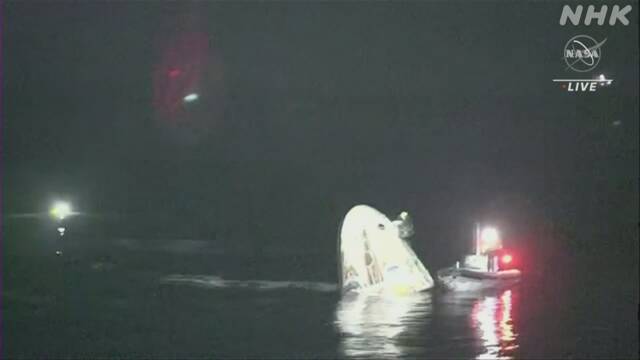 そして、宇宙船はパラシュートを開いて降下し、午後3時57分ごろに、アメリカ・フロリダ州の沖合のメキシコ湾に着水し、およそ半年ぶりに地球に帰還しました。