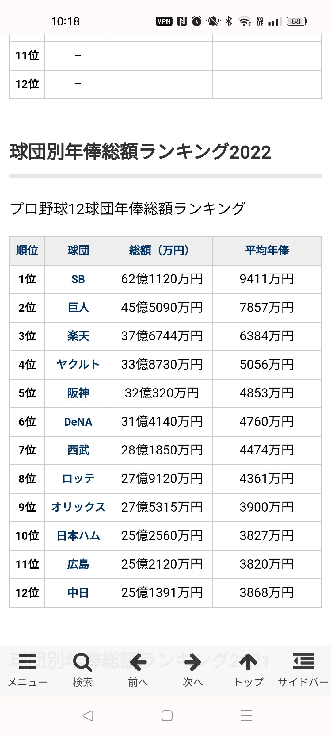 【画像】球団別年俸総額ランキング、やはりあの球団が圧倒的