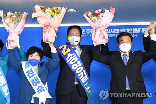 宋氏は合計35.60%の得票率を獲得し、35.01%を得票した親文在寅(ムン・ジェイン)派の洪永杓(ホン・ヨンピョ)議員を僅差で制した。