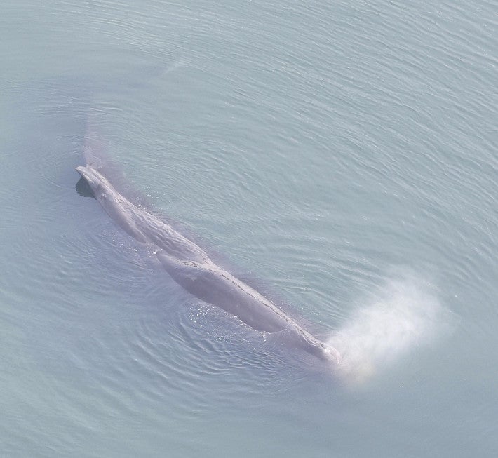 【大阪・淀川河口付近にクジラ 体長8mほどか “潮を吹き泳ぐ姿”を上空からカメラが捉える】