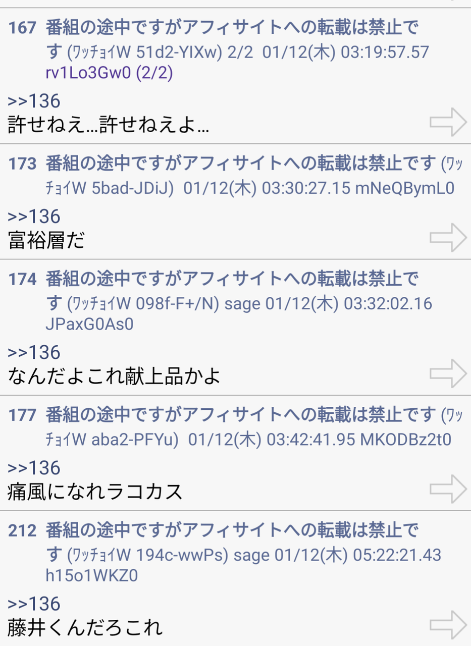 136 番組の途中ですがアフィサイトへの転載は禁止です (ワッチョイW 61de-Ty5h) 2023/01/12(木) 02:29:39.28 ID:rAzFVDju0