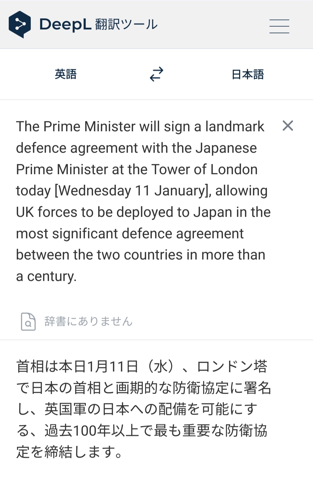 首相は本日[1月11日水曜日]、ロンドン塔で日本の首相と画期的な防衛協定に署名し、1世紀以上にわたる両国間の最も重要な防衛協定で英国軍を日本に派遣することを可能にします.