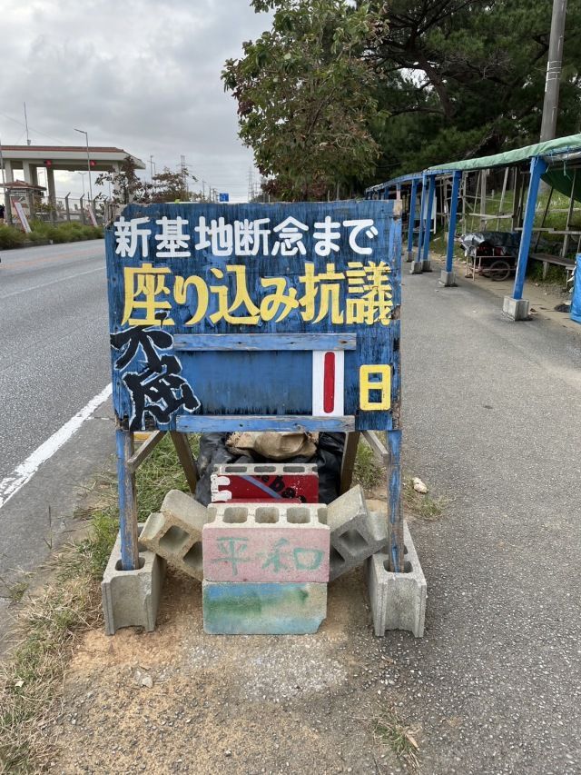 【辺野古問題取材班】名護市辺野古の新基地建設への反対運動が続く米軍キャンプ・シュワブゲート前で14日、抗議日数を示した看板の4桁の数字のうち一部が何者かによって外され、「1日」になっていた。