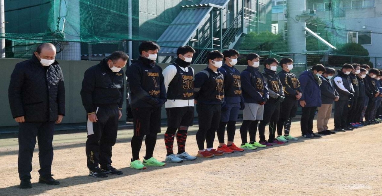 1995年1月17日に起きた阪神大震災から28年となったこの日、プロ野球・阪神は兵庫県西宮市の鳴尾浜球場で黙祷を捧げた。