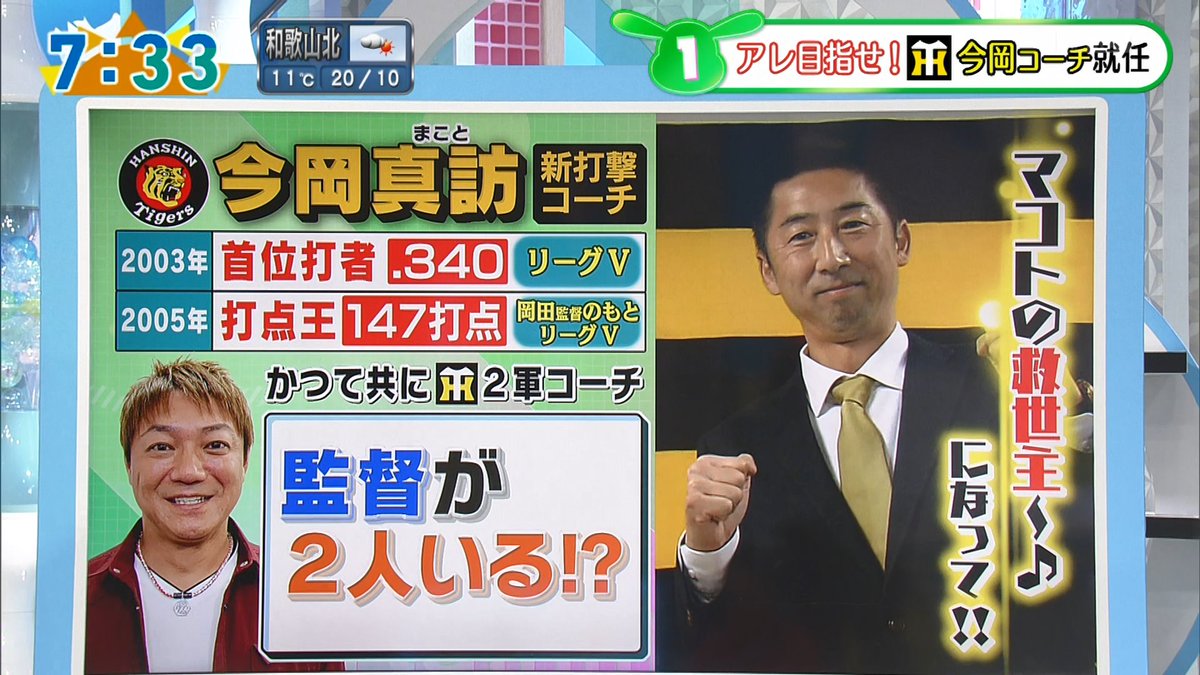 阪神は17日、日刊スポーツ評論家として健筆を振るった今岡真訪氏(48)の1軍打撃コーチ就任を発表した。背番号は77に決定。阪神には6年ぶりの復帰で、1軍の指導は初。2月の沖縄・宜野座キャンプから本格始動する。これで18年ぶりリーグ優勝を狙う岡田阪神の監督、コーチ陣容が固まった。兵庫・西宮市内で就任会見した今岡氏は熱く決意表明した。