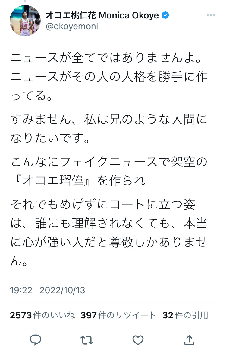 — オコエ桃仁花 Monica Okoye (@okoyemoni) October 13, 2022
