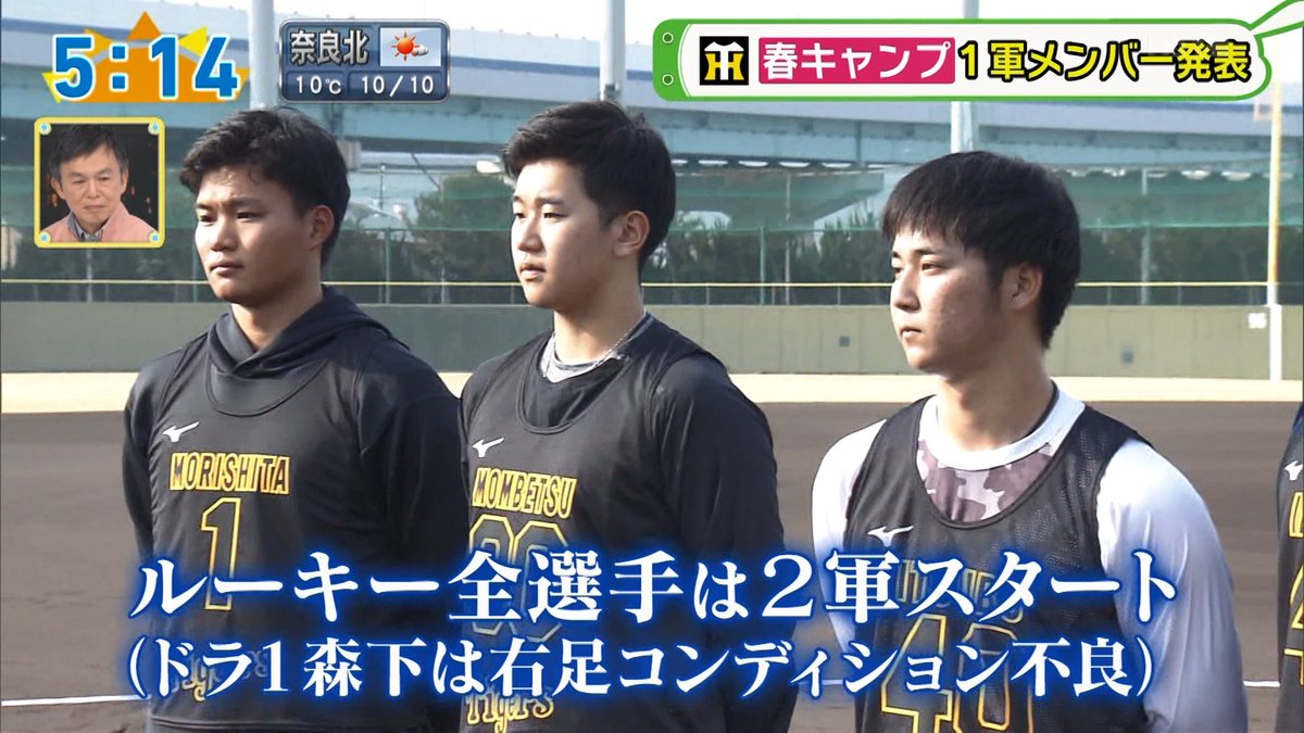 開幕に照準を合わせる。右足肉離れで新人合同自主トレを一部別メニュー中の阪神ドラフト1位・森下翔太外野手(22=中大)は、2軍の具志川キャンプスタートが正式決定。悔しさをにじませながらも、完治後の逆襲を誓った。