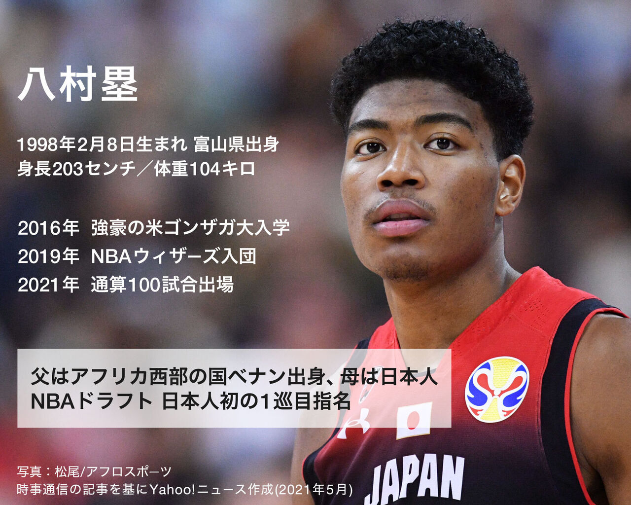 八村は宮城・明成高(現仙台大明成高)から米ゴンザガ大を経て、2019年に日本人初のドラフト1巡目指名を受けた。4季目の今季は先発出場がなく、30試合の出場で1試合平均13得点、4.3リバウンド。右足首のけがで一時離脱したが、自己最多の30得点を2度記録した。今季が新人契約最終年で、今夏に制限付きのフリーエージェント(FA)になる。