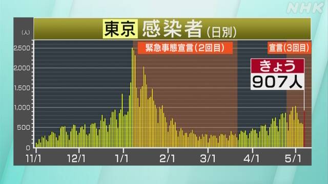 【新型コロナ】東京都、新たに907人感染 5月7日