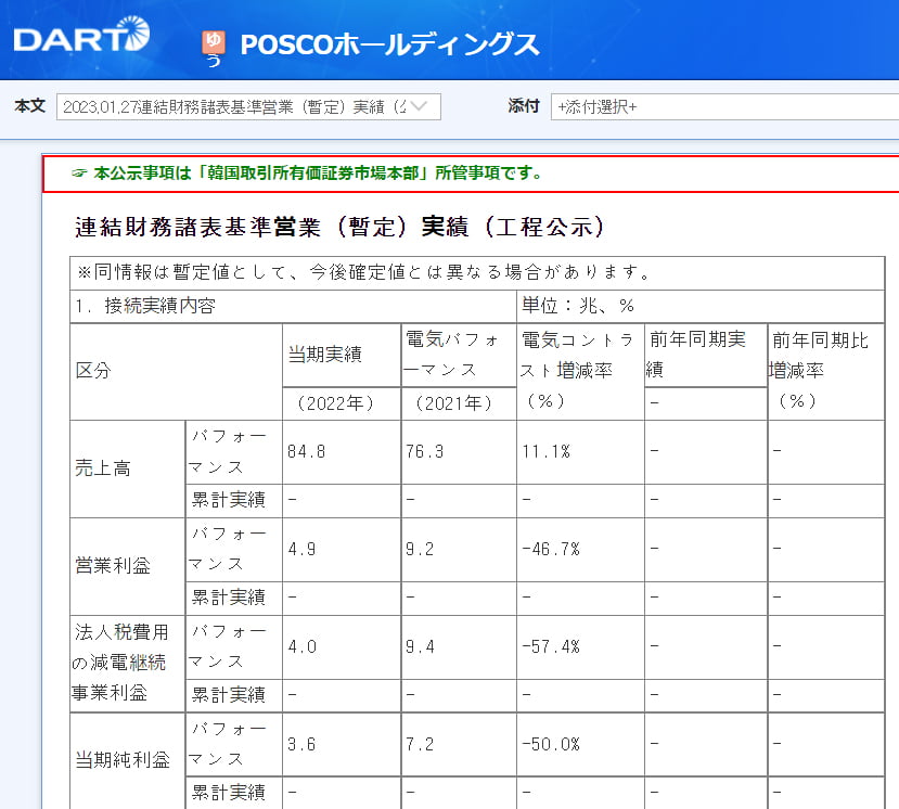 台風被害によって起こった浦項製鉄所の生産減少、その損失と復旧にかかるコスト。これらの決算に対する影響を1.3兆ウォンと読んでの業績――となっています。