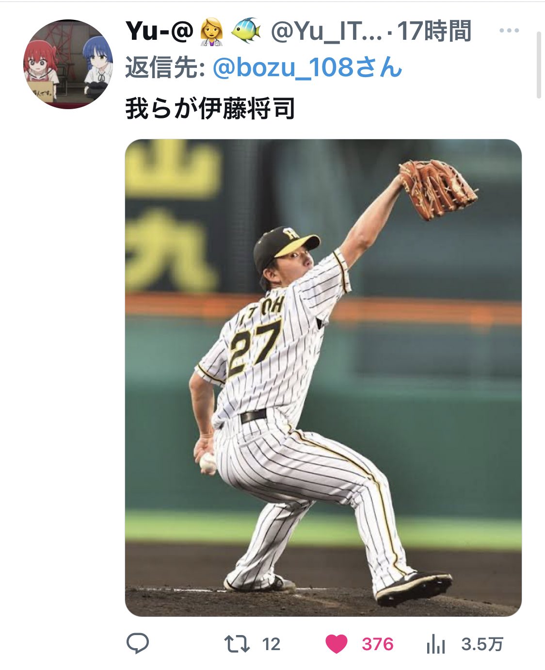 #伊藤と言ったらこの人!選手権 #伊藤将司 https://twitter.com/bozu_108/status/1618483740812140549 …