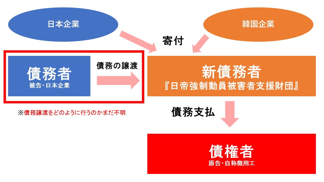 この場合でも日本は『日帝強制動員被害者支援財団』が後で被告・日本企業に代位弁済した分の債務を請求できないように、「求償権」を封じておく必要があります。