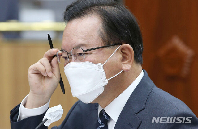 ▲ メガネをかけ直すキム・ブギョム次期国務総理候補。