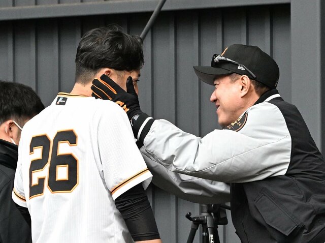 周囲に緊張感が走るなか、指揮官の両手が今村の顔面に伸びていったのだが…。今村が思わず身を固めた次の瞬間、原監督は、投球練習直後で紅潮した今村のほっぺをサワサワ。満面の笑みを浮かべたその表情は、何ともうれしそうでした。
