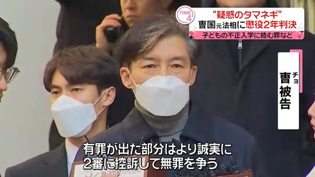 文政権で法相を務めた曹国被告は、子供の大学入試に絡む虚偽公文書作成や、政府元幹部の監察をもみ消した職権乱用の罪などに問われています。曹被告は在宅起訴された後も無罪を主張し、裁判は3年近く続いていました。