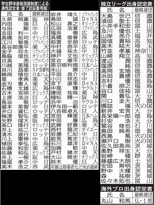 日本学生野球協会は3日、プロ経験者が国内の高校、大学の指導者になるために必要な「学生野球資格回復」の審査委員会を開催。