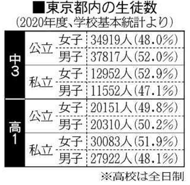 「東京都立高校は、なぜ女子より男子を多く募集しているの?」。都立高を受験し合格した新宿区の女子生徒(15)と保護者(48)から、本紙に質問が届いた。