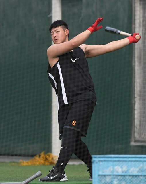 巨人・岡本、体が締まってムキムキになる