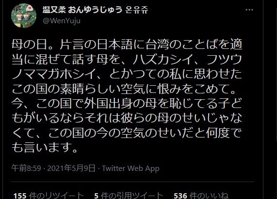 母を恥じてる子どもがいるならそれは彼らの母のせいじゃなくて、この国の今の空気のせいだと何度でも言います。