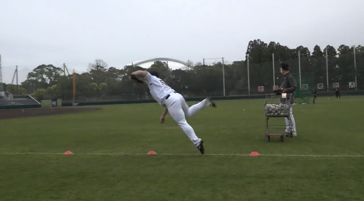 返球の速度をスピードガンで測定・・・なんと145km/h‼