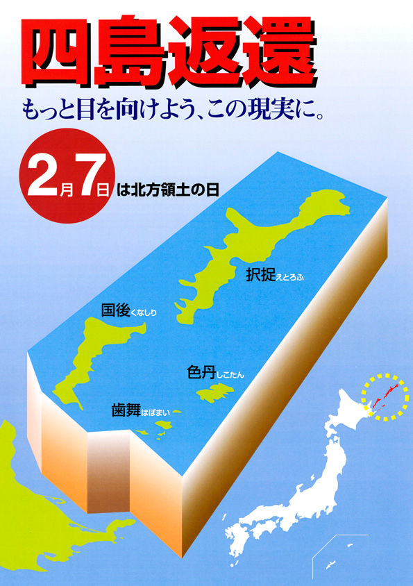 北方領土は現在ロシア連邦が実効支配している国後島・択捉島・歯舞諸島・色丹島の4島を指し、記念日の日付は日本(江戸幕府)とロシア(帝政ロシア)で最初に国境の取り決めを行った、1855年(安政元年)の「日露和親条約」の締結日(新暦)に由来する。