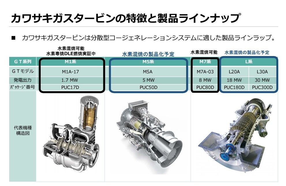 川崎重工業のガスタービン/同社資料「水素社会実現に向けて」キャプション