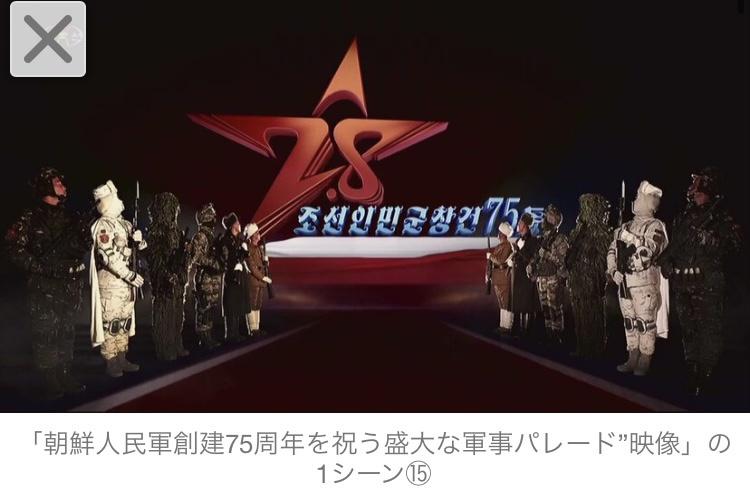 朝鮮中央テレビは9日午後6時から、“朝鮮人民軍創建75周年を祝う盛大な軍事パレード”の模様を放送した。