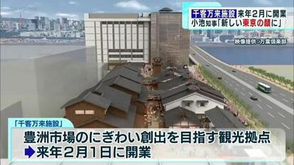 豊洲市場の観光拠点「千客万来施設」が2024年2月に開業することが明らかになりました。東京都の小池知事は「『新しい東京の顔』としてにぎわってほしい」と期待を示しました。