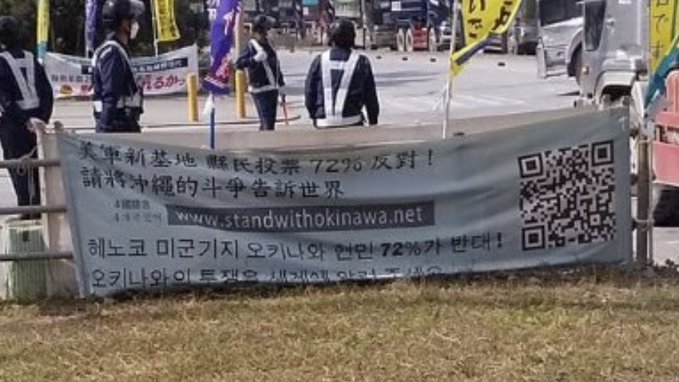 【中国韓国北朝鮮】辺野古反対派の垂れ幕、日本語が消えて中国語とハングルだらけになる ひろゆき「隠さなくなってきたんですね」