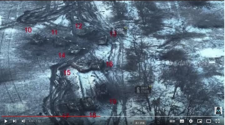 ロシア軍部隊は攻撃に失敗すると30両の装甲戦闘車両などを放棄して逃げた The Daily Unseen 2/YouTube