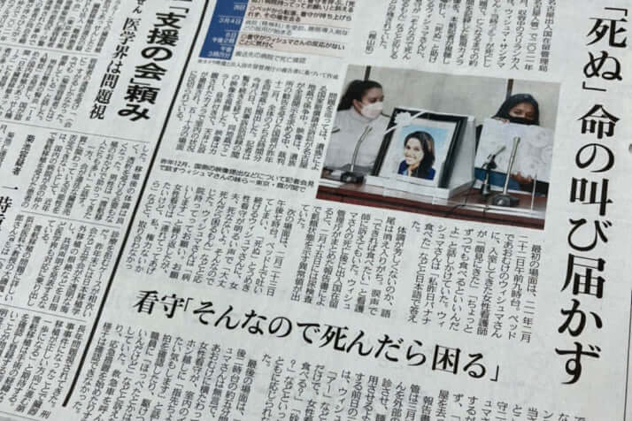 メディアの中でもっとも早く証拠映像を視聴して内容を報じたのが、2月10日の中日新聞だった。「入管映像 届かない叫び 嘔吐し『死ぬ』 看守に訴え 『そんなので死んだら困る』 名地裁で本紙記者視聴」という見出しの記事を朝刊の社会面トップに掲載。同社の東京本社が発行する東京新聞の夕刊にも同日掲載された。