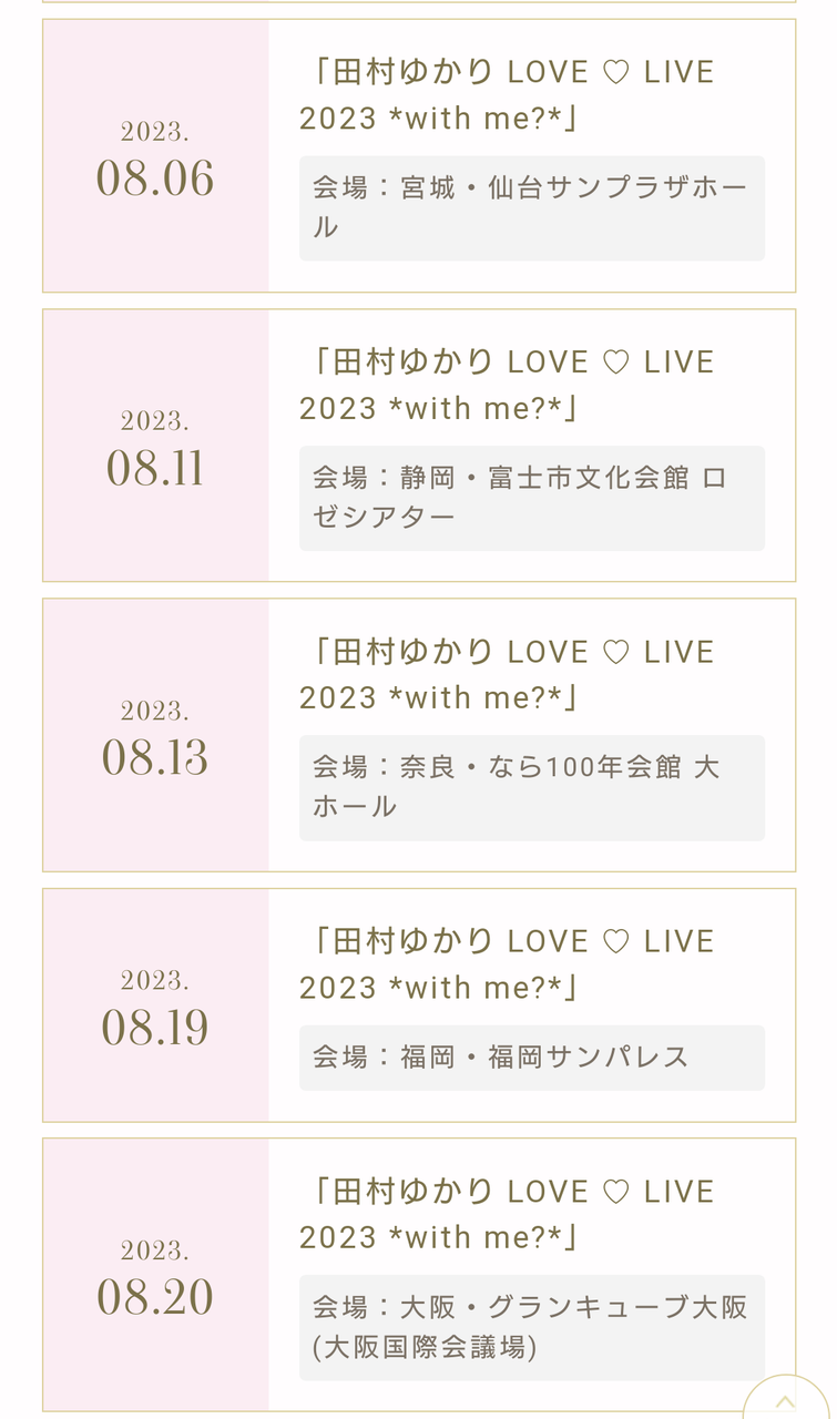 田村ゆかりの今年の全国ツアーのスケジュールwwwwwwwwwwww