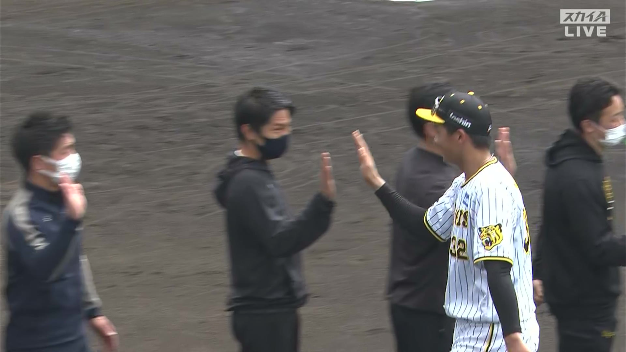 最後は岡田監督も笑顔で選手やスタッフ陣とハイタッチ。直前まで降り注いだ雨もやみ、清清しい表情で選手はグラウンドから引き上げた。