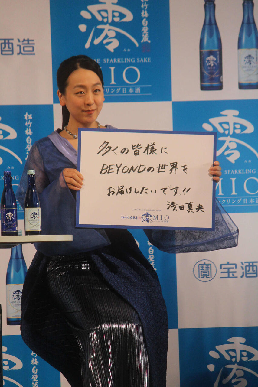 プロフィギュアスケーターの浅田真央さん(31)が7日、アンバサダーを務める宝酒造のスパークリング日本酒「澪」の23年度ブランド戦略発表会に出席した。日本人女性として初めてパリにチョコレート専門店を出店したショコラティエの佐野恵美子さんと、「挑戦」をテーマに対談。今後について「多くの皆様に「BEYOND」の世界をお届けしたいです!!」と書き記した。