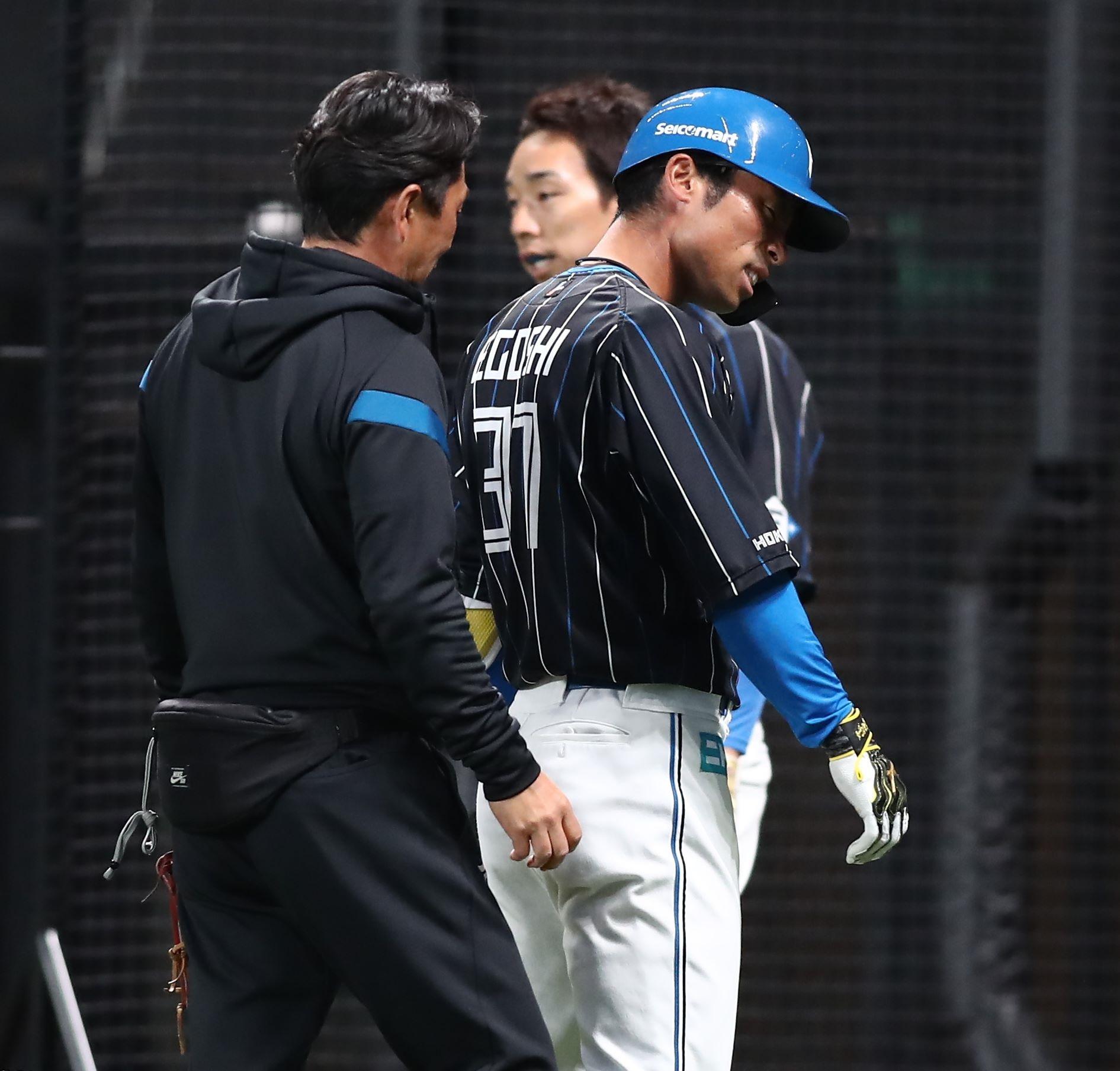 江越は新庄監督に「大丈夫です」と告げて治療のためベンチ奥に下がった。新庄監督は「無理するなよ」と声をかけ、そのまま心配そうに江越の後を追った。