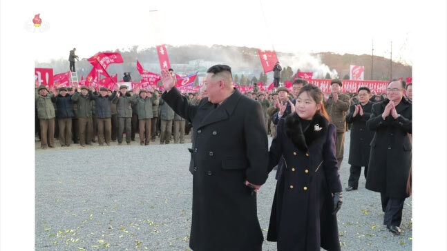 公式の席に登場したキム・ジュエさんの姿を北朝鮮メディアが公開し始めたのは、昨年11月の大陸間弾道ミサイル(ICBM)発射現場のときからだ。当時、朝鮮中央通信は、金正恩国務委員長のICBM発射視察を報じつつ「愛するお子さま、女史と共に自らお出ましになった」と伝えた。今月までにキム・ジュエさんの姿が報道された事例を集計すると、2月25日に公開された平壌西浦地区ニュータウン建設着工式の現場を含め合わせて7回になる、とRFAは伝えた。