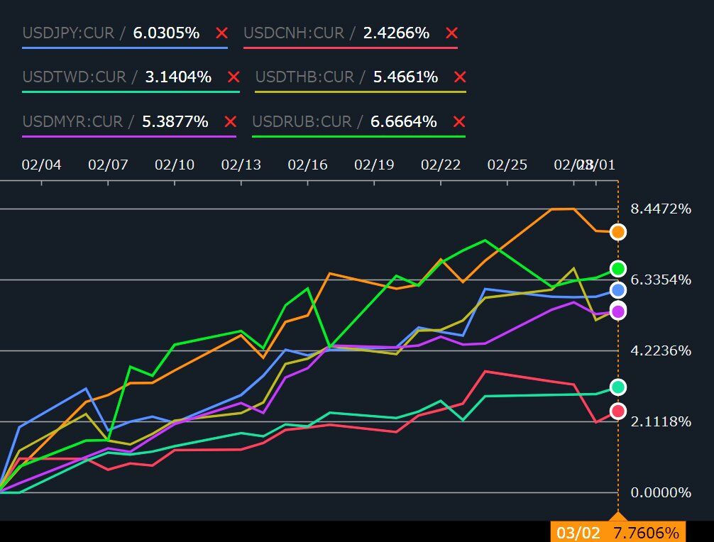 例えば、韓国メディア『毎日経済』はウォン安の進行具合を嘆き「強ドル帰還に『弱いウォン』…02月下落幅は主要国最大」という記事を出しています。
