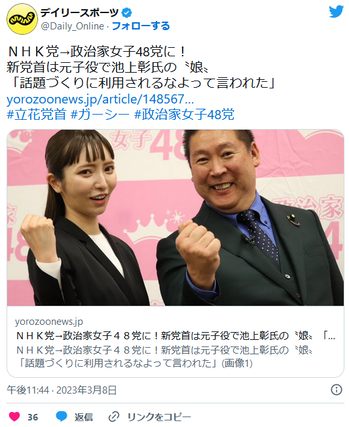 NHK党が『政治家女子48党』に改名 立花党首は辞任… 新党首は池上彰氏の“娘”大津綾香氏