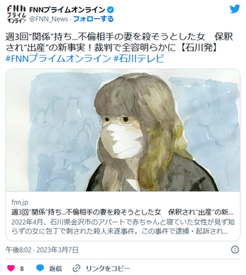 【石川】週3回“関係”持ち…不倫相手の妻を殺そうとした女 保釈され不倫相手の子を“出産”の新事実!裁判で全容明らかに 金沢市