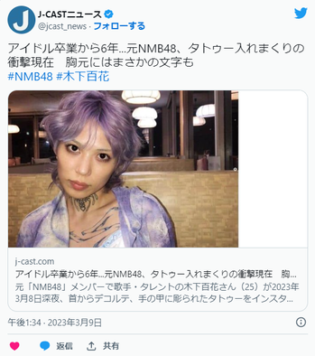 【元NMB48】アイドル卒業から6年…元NMB48、タトゥー入れまくりの衝撃現在 上半身にはまさかの文字も