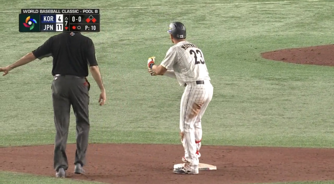 【 #侍ジャパン 】常に次の塁を狙い全力を尽くす我らがたっちゃん!!最後の打席でヒットを放った #ヌートバー が相手の隙を見逃さず2塁に進む好走塁を見せました👏