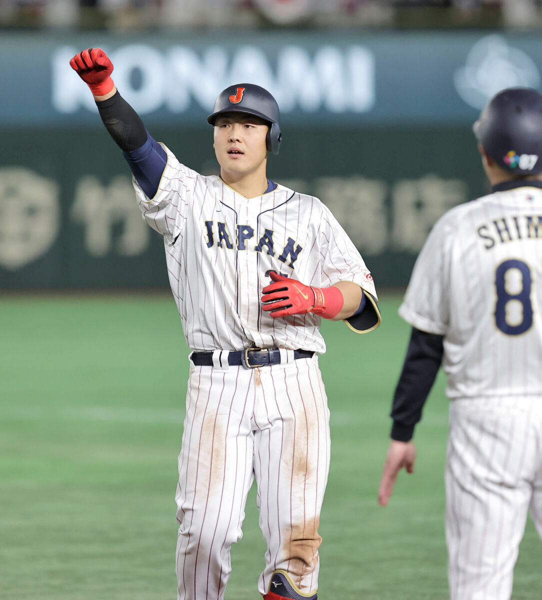 6点リードの6回1死一、二塁の好機で打席に立つと、1ボール2ストライクからの148キロツーシームを左中間へとはじき返し、リードを広げる適時打とした。5回2死の第3打席では、今大会初安打となる中前安打をマーク。その勢いをそのままに2打席連続の快音を響かせると、一塁ベンチへ向けて右拳を突き上げ、チーム内で流行中のコショウをひく「ペッパーグラインダーポーズ」を華麗に決めた。