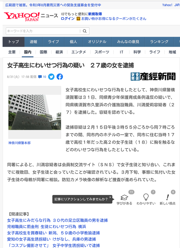 【悲報】16歳少女、ラブホテルで元カノを暴行して逮捕