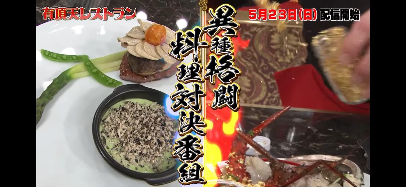 初回の配信は、5月23日(日)の20時。初回の対決は「ミシュラン二つ星の和のモンスターシェフに、新進気鋭の若手フレンチシェフが挑む」とのことです。宮迫は、