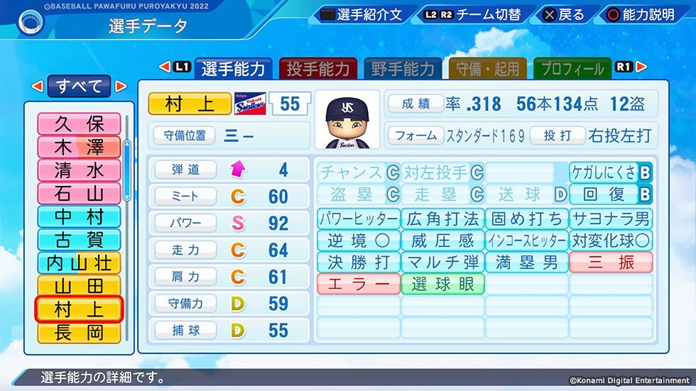 パワプロ2022が2023バージョンにアプデ。村上宗隆や佐々木朗希も上方修正へwww