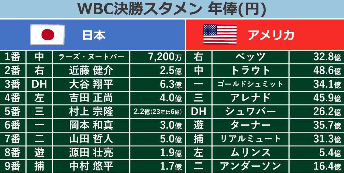 【衝撃】WBC 日本代表とアメリカ代表の年俸の差がガチで凄い